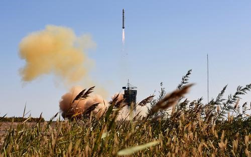 2015年10月7日12時13分,我國在酒泉衛(wèi)星發(fā)射中心用長征二號丁運載火箭成功將1組“吉林一號”商業(yè)衛(wèi)星發(fā)射升空。(趙鵬攝/新華社)