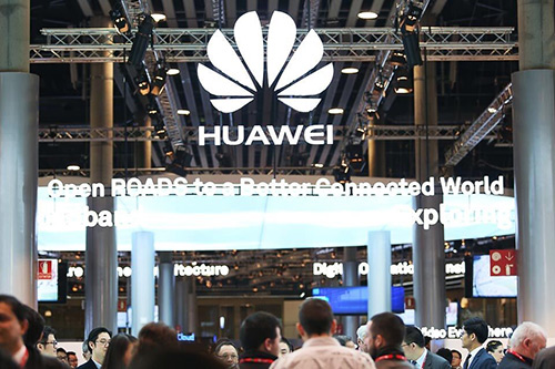 2016年2月,華為在西班牙巴塞羅那世界移動通信大會的展臺。華為在此次展會上發(fā)布了旗下首款二合一筆記本電腦。