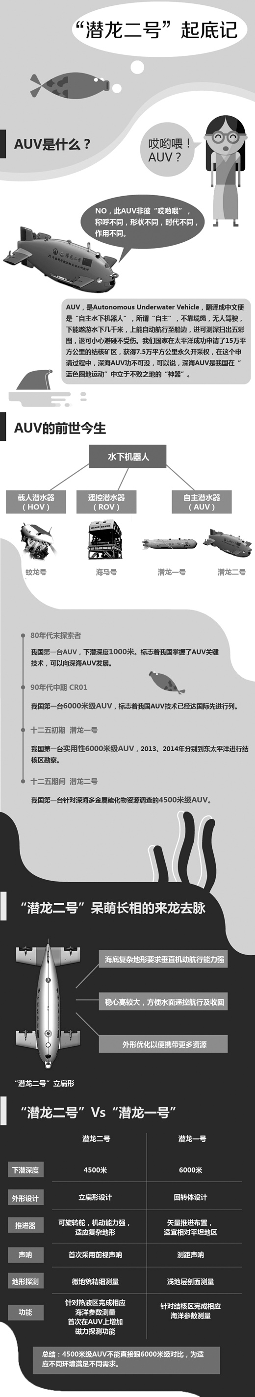 這不是一條普通的魚,它的全名叫4500米級深海資源自主勘查系統(tǒng)“潛龍二號”,這是我國首臺自主研發(fā)的4500米級自主水下機器人。這些天,在國際海底管理局與我國簽訂的多金屬硫化物勘探合同區(qū)——西南印度洋一片熱液區(qū)的海底,它按照預(yù)先設(shè)計的路線,首次堅持了整整30個小時的全航程探測,首次探測了海底山脈(即洋中脊)熱液區(qū),并獲得了精細(xì)的三維地形地貌數(shù)據(jù)和300多張高分辨率連續(xù)照片……實現(xiàn)了中國深??瓶嫉亩鄠€“首次”。