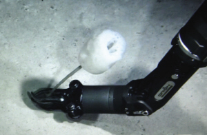 機(jī)械手由主、副手構(gòu)成,就是潛航員在艙內(nèi)操控臺上控制兩個微縮的手臂,從而控制著艙外的兩個大機(jī)械手。潛航員在日常練習(xí)中能夠使用一只機(jī)械手握著水瓶,向附近的紙杯倒水,滴水不漏。