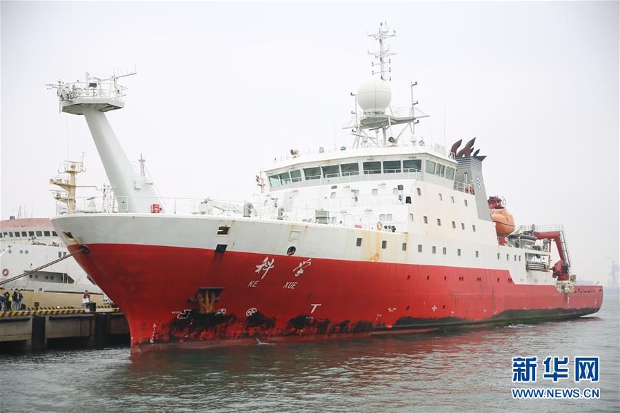 11月5日,“科學(xué)”號(hào)科考船??吭谖挥谇鄭u西海岸新區(qū)的母港。 新華社發(fā)(張進(jìn)剛 攝)
