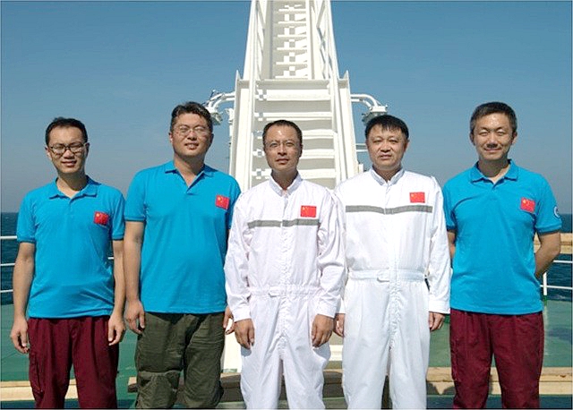 (左起:社員張健副研究員,社員連超高級工程師,社海洋所副主委欒振東教授級高工,社員劉合義船長,社員王昊副研究員)