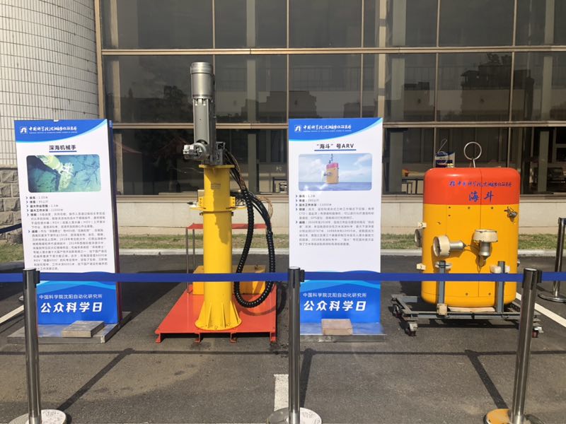 “海斗”號(hào)萬米級(jí)自主水下機(jī)器人和深海液壓機(jī)械手系統(tǒng)實(shí)物首次與公眾見面。中科院沈陽自動(dòng)化研究所供圖