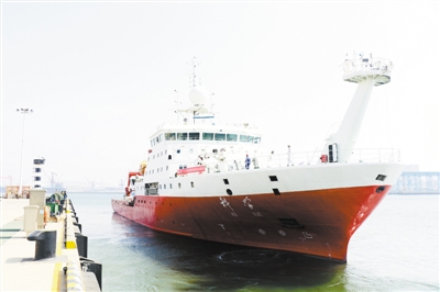 上圖 “科學(xué)”號緩緩駛離青島母港。