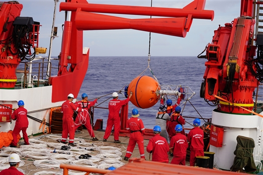 科研人員在西太平洋進(jìn)行潛標(biāo)布放
