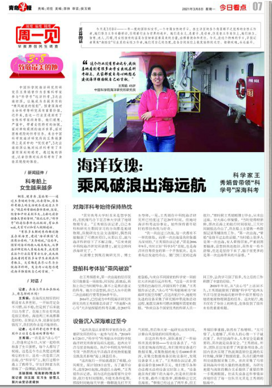從讀博士到現(xiàn)在做研究員、博士生導(dǎo)師,一晃,王秀娟在中科院海洋研究所已經(jīng)度過了近20年時間,但她對海洋科考這份事業(yè),始終保持著年輕時的那份熱忱與好奇。