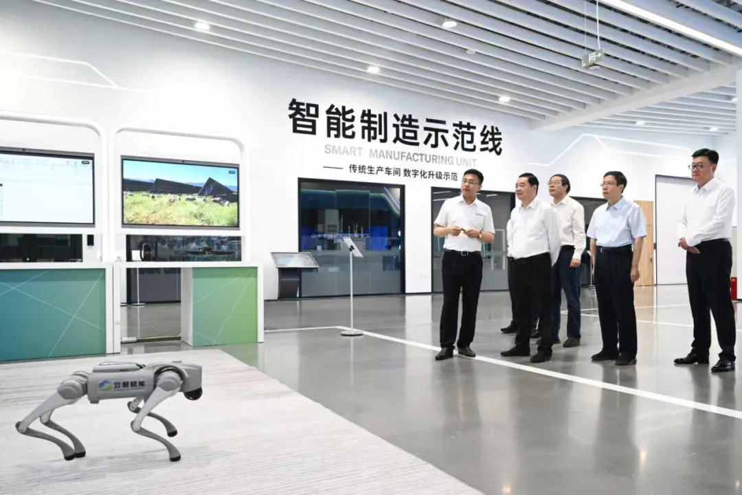 省委書記、省人大常委會主任郝鵬在遼寧雙智賦能科技有限公司聽取數(shù)字化轉型技術和應用場景情況介紹。