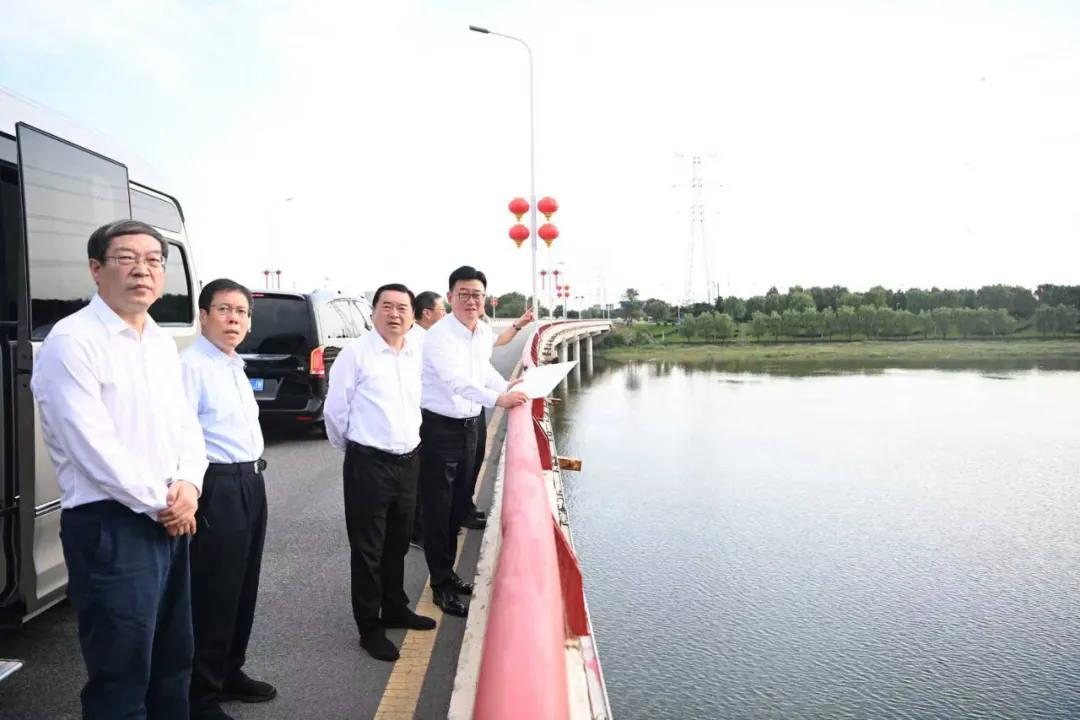 省委書記、省人大常委會主任郝鵬在雷鋒大橋停車察看周邊環(huán)境狀況。