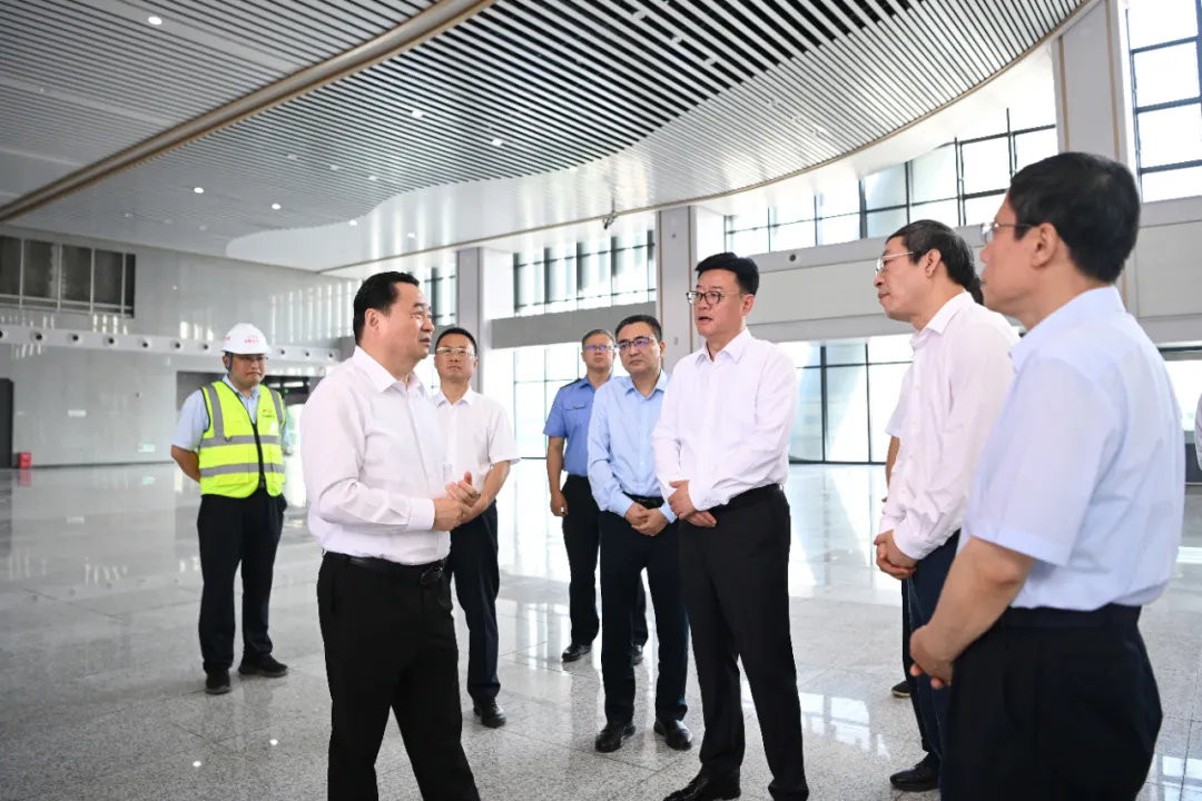 省委書記、省人大常委會主任郝鵬在沈白高鐵伯官站察看工程建設進展。