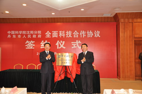 4月17日,中國(guó)科學(xué)院沈陽(yáng)分院與丹東市人民政府全面科技合作協(xié)議簽約儀式在丹東賓館隆重舉行。中國(guó)科學(xué)院院長(zhǎng)、黨組書記白春禮,丹東市委書記戴玉林在簽約儀式上講話并共同為中國(guó)科學(xué)院沈陽(yáng)國(guó)家技術(shù)轉(zhuǎn)移中心丹東中心揭牌。沈陽(yáng)分院院長(zhǎng)包信和,丹東市委副書記、市長(zhǎng)趙連生代表院市雙方在全面科技合作協(xié)議上簽字。簽約儀式由丹東市委副書記李樹民主持,沈陽(yáng)分院副院長(zhǎng)梁波代表雙方匯報(bào)了市院合作情況。