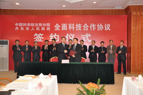 中科院相關(guān)研究所、丹東市及相關(guān)部門的領(lǐng)導(dǎo)和當(dāng)?shù)仄髽I(yè)代表等80余人參加了簽約儀式。