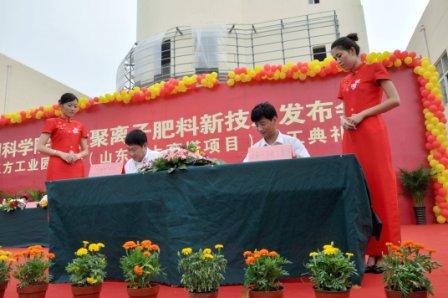 7月25日,由山東三方化工集團(tuán)有限公司投資六億元建設(shè)的三方工業(yè)園開工慶典暨與中科院沈陽應(yīng)用生態(tài)研究所合作簽約儀式在山東莒南經(jīng)濟(jì)開發(fā)區(qū)舉行。沈陽生態(tài)所黨委書記姬蘭柱、所院地合作辦副主任景紅雙、肥料工程中心主任石元亮等受邀并出席,姬蘭柱書記出席簽約儀式并發(fā)表賀詞。