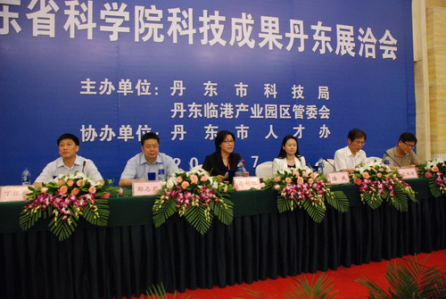 7月18-21日,“山東省科學(xué)院科技成果丹東展洽會”在丹東市皇冠假日酒店隆重召開。山東省科學(xué)院副院長于承建、生物研究所(生物中心)主任史建國、激光研究所所長賈中青、科技發(fā)展戰(zhàn)略研究所所長李星洲、海洋儀器儀表研究所副所長李民、新材料研究所副所長張新恩、自動化研究所副所長張東、能源研究所副所長許崇慶、分析測試中心副主任王曉東、中科院山東綜合技術(shù)轉(zhuǎn)化中心主任徐巖等16位領(lǐng)導(dǎo)和專家參加展洽會。中科院沈陽分院副院長馬越紅、丹東市副市長徐春光、潘爽,臨港產(chǎn)業(yè)區(qū)管委會主任郭志君等出席展洽會。丹東區(qū)域近60家企業(yè)老總、技術(shù)負(fù)責(zé)人等100余人參加展洽會。展洽會由丹東市科技局局長丁振毅主持。