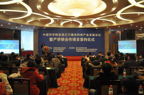 12月14日,中科院促進遼寧激光科技產(chǎn)業(yè)發(fā)展論壇暨產(chǎn)學(xué)研合作項目簽約儀式在鞍山勝利賓館隆重召開。會議由中科院沈陽分院、遼寧省科技廳、鞍山市人民政府聯(lián)合主辦,沈陽分院副院長馬越紅、遼寧省科技廳副廳長孟慶海、鞍山市副市長張世超,中科院相關(guān)研究所、鞍山市科技局、發(fā)改委、財政局、高新區(qū)管委會、開發(fā)區(qū)管委會、海城市人民政府及相關(guān)企業(yè)代表100余人參加會議。