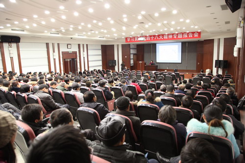 姜曉秋以圖文聲并茂的形式分別從科學(xué)發(fā)展觀的歷史地位、奪取中國(guó)特色社會(huì)主義新勝利、中國(guó)特色社會(huì)主義總體布局、建設(shè)中國(guó)特色社會(huì)主義事業(yè)的領(lǐng)導(dǎo)核心等四個(gè)方面深刻闡述了對(duì)黨的十八大精神的理解,使分院系統(tǒng)廣大科技人員深刻領(lǐng)會(huì)了黨的十八大是在我國(guó)全面建成小康社會(huì)的關(guān)鍵階段和世界形勢(shì)發(fā)生復(fù)雜而深刻變化的情況下召開(kāi)的一次十分重要的會(huì)議。這是一次高舉旗幟、凝聚力量,與時(shí)俱進(jìn)、勇于創(chuàng)新,繼往開(kāi)來(lái)、團(tuán)結(jié)奮進(jìn)的大會(huì)。大會(huì)確立了科學(xué)發(fā)展觀作為黨的指導(dǎo)思想,成功實(shí)現(xiàn)了領(lǐng)導(dǎo)層的新老交替,深刻回答了舉什么旗,走什么路,朝著什么目標(biāo)走,怎么走和用什么精神狀態(tài)走等重大戰(zhàn)略問(wèn)題。大家普遍反映姜曉秋的報(bào)告內(nèi)容豐富精彩、通俗易懂,收獲良多。