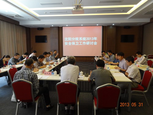 2013年5月31日,沈陽分院在大連化物所召開了分院系統(tǒng)2013年安全保衛(wèi)工作研討會,沈陽分院黨組書記、副院長馬思,院辦公廳安保處處長謝鳳臣以及沈陽分院系統(tǒng)8個單位的安保負(fù)責(zé)人和安全主管共24名同志參加了會議。