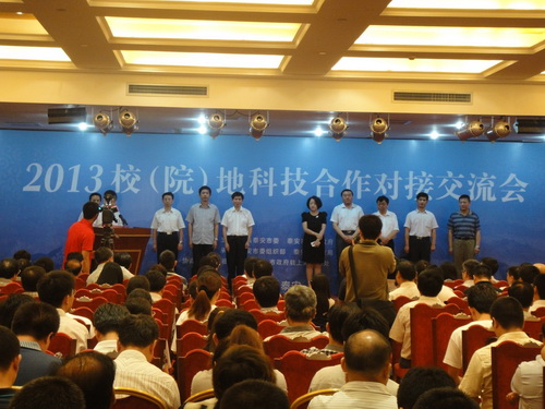 2013年7月18日上午, 中科院沈陽分院院長助理、山東中心主任徐巖等一行3人參加了泰安校(院)地科技合作對接交流會。泰安市委常委、組織部長陳平,泰安市副市長展保衛(wèi),泰安市科技局長張慶云以及泰安市各縣市組織部、科技局、企業(yè)和來自國內(nèi)的18家科研院所的專家共計(jì)300余人參加了此次會議。