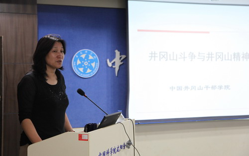 馬越紅作了《井岡山斗爭與井岡山精神》的主題報告,詳細介紹了井岡山斗爭重大事件、井岡山精神實質和內涵、新時期如何弘揚井岡山精神等,著重介紹了井岡山斗爭時期堅持黨的群眾路線取得的勝利,背離群眾路線遭受的失敗教訓,及其對于當前開展好黨的群眾路線教育實踐活動的歷史借鑒意義和現實參考價值。