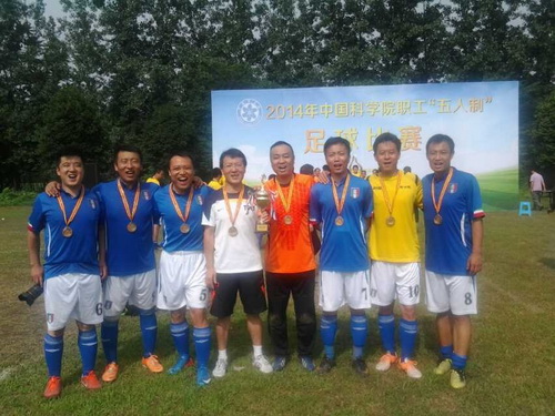 2014年6月11日至16日,由大連化物所、金屬所、沈陽自動(dòng)化所8名職工組成的沈陽分院足球隊(duì)參加了在成都謝菲聯(lián)足球訓(xùn)練基地舉行的中國科學(xué)院首屆職工五人制足球賽,并最終獲得了第三名的好成績,是近年來分院組隊(duì)參加全院團(tuán)體比賽項(xiàng)目的最好名次。