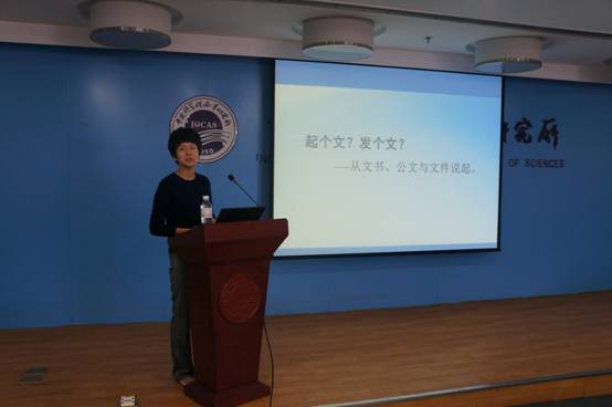 在培訓(xùn)會上,院辦公廳文書處劉陽作了“中國科學(xué)院公文處理辦法解析及實例研討”專題報告,金屬所辦公室何孝瑛作了“淺談金屬所公文處理工作”專題報告,大連化物所于沁作了“二期檔案進(jìn)館工作交流”專題報告。參訓(xùn)人員根據(jù)報告內(nèi)容,緊密結(jié)合各自的工作,就公文擬制和修改、公文核稿、公文流轉(zhuǎn)、公文與檔案管理的銜接、二期檔案進(jìn)館工作流程及個人工作中遇到的具體問題和體會,進(jìn)行了熱烈研討和交流,并結(jié)合海洋所二期檔案進(jìn)館工作,現(xiàn)場對其檔案整理工作進(jìn)行了研討和交流。