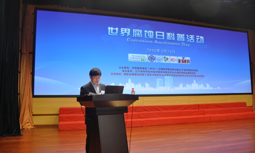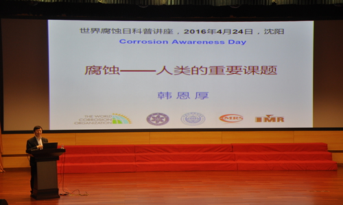 活動以“走進腐蝕世界,營造健康生活”為主題,通過舉辦科普報告、“走進腐蝕世界”科普展覽、“趣味腐蝕現(xiàn)象”系列科普實驗、科學(xué)體驗營、科普知識問答等活動,向社會各界展示腐蝕給我們的生活帶來的危害與便利,并學(xué)習(xí)如何控制腐蝕,提高腐蝕防護意識?;顒又校澜绺g組織主席、中國科學(xué)院沈陽分院院長韓恩厚研究員為來自沈陽市第二中學(xué)、沈陽市第五中學(xué)、遼寧省實驗中學(xué)、東北育才學(xué)校、沈陽120中學(xué)、北京師范大學(xué)沈陽附屬學(xué)校師生及社會公眾400多人做了題目為“腐蝕--人類的重要課題”的精彩報告。報告生動地介紹了腐蝕問題與國民經(jīng)濟建設(shè)和國防建設(shè)息息相關(guān),我國每年由于腐蝕造成的經(jīng)濟損失約占國民生產(chǎn)總值(GDP)的5%,腐蝕不僅僅給國民經(jīng)濟造成巨大損失,還會對人們的安全、健康和生活質(zhì)量造成重大影響。同時腐蝕也是可以利用的,如電路板刻蝕中的應(yīng)用。報告中,韓恩厚研究員還向前來的市民介紹了一些像“含鹽、酸成分飯菜不宜用不銹鋼長期盛放”、“金屬器皿不能煎熬中藥”、“隔夜再開水龍頭流一會兒再食用”、“熱水器里的鎂棒需定時更換”等生活中應(yīng)用到的腐蝕防控的相關(guān)知識和小竅門。