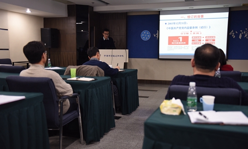 會上,首先由王東升同志作題為《十八屆六中全會精神學(xué)習(xí)體會》的報告,對十八屆六中全會審議通過的《關(guān)于新形勢下黨內(nèi)政治生活的若干準(zhǔn)則》和《中國共產(chǎn)黨黨內(nèi)監(jiān)督條例》進行了的講解,并結(jié)合自身工作實踐,介紹了如何將促進科技成果轉(zhuǎn)化工作與從嚴(yán)治黨要求緊密結(jié)合,把全面貫徹落實十八屆六中全會精神落在實處的個人學(xué)習(xí)體會。隨后,崔淑霞和劉勇兩位同志分別以《關(guān)于新形勢下黨內(nèi)政治生活的若干準(zhǔn)則解讀》和《<中國共產(chǎn)黨黨內(nèi)監(jiān)督條例>交流報告》為題作報告。崔淑霞結(jié)合個人學(xué)習(xí)體會強調(diào)全體黨員應(yīng)嚴(yán)格黨的組織生活制度,保持清正廉潔的政治本色。劉勇通過查閱大量資料,就《條例》修訂的背景、原則和過程作了詳細說明,并對《條例》部分內(nèi)容深入講述了自身的理解和體會。