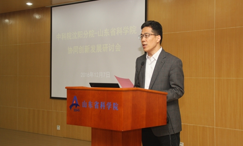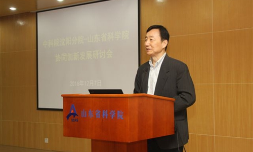 為進(jìn)一步深化中科院沈陽分院與山東省科學(xué)院間的戰(zhàn)略合作,全面總結(jié)既往的合作成果,研究部署十三五期間的重點(diǎn)工作,12月7日,沈陽分院與山東省科學(xué)院在濟(jì)南共同舉辦了兩院協(xié)同創(chuàng)新發(fā)展研討會。山東省政協(xié)副主席翟魯寧,山東省人大常委李海艦,中科院科技促進(jìn)發(fā)展局副局長趙千鈞,沈陽分院院長韓恩厚,沈陽分院分黨組書記、副院長姬蘭柱,沈陽分院副院長馬越紅、分黨組副書記徐巖,山東省科學(xué)院黨委書記、院長王英龍,副院長于承建,副院長劉孟德,曾推進(jìn)兩院合作的部分領(lǐng)導(dǎo),山東省對外科技交流中心負(fù)責(zé)人,沈陽分院辦公室、組織人事處、科技合作處和山東省科學(xué)院院屬單位、機(jī)關(guān)處室負(fù)責(zé)人,第一、第二批兩院青年科學(xué)家伙伴小組入選人員等參加了會議。會議由劉孟德主持。