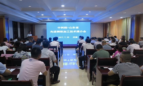 為了落實中科院和山東省全面合作協(xié)議,加快推動山東省鋼鐵行業(yè)和高端制造業(yè)的新舊動能轉換,7月25日,沈陽分院和山東省科技廳在山東濟南共同組織召開了“先進鋼鐵加工技術推介會”。中國科學院院士李依依,中科院沈陽分院院長韓恩厚、副院長馬越紅,金屬研究所副所長譚若兵、山東省科技廳副廳長于書良,以及來自山東各地市科技系統(tǒng)、山東中心各分中心負責人、重點企業(yè)負責人、新聞媒體等150余人參加了會議。