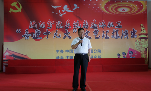 9月19日,沈陽分院組織分院系統(tǒng)駐遼各單位離退休職工,在沈陽舉辦“喜迎十九大”文藝匯演。沈陽分院分黨組書記、副院長姬蘭柱,沈陽生態(tài)所黨委書記、副所長金昌杰,黨委副書記、紀(jì)委書記郭秀銀,沈陽自動(dòng)化所黨委書記、副所長桑子剛,金屬所副所長張健以及駐遼單位離退休工作負(fù)責(zé)人和離退休演職人員近200余人參加了演出活動(dòng)。