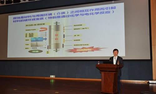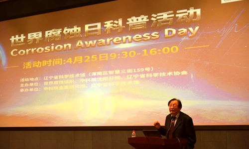 活動(dòng)中,世界腐蝕組織主席、沈陽(yáng)分院院長(zhǎng)、金屬研究所研究員韓恩厚為社會(huì)公眾做了題為“腐蝕—使用材料的永恒主題”的精彩報(bào)告。他從什么是腐蝕、腐蝕給我們?nèi)粘I顜?lái)的威脅、對(duì)國(guó)家的重大工程如航天、核電、油氣、高鐵和橋梁等造成的重要影響,以及如何控制和利用腐蝕等方面進(jìn)行了全面的介紹。