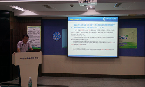 郭秀銀在講話時強(qiáng)調(diào),制度建設(shè)是推進(jìn)分院機(jī)關(guān)規(guī)范管理的必要手段,沈陽分院一貫重視制度建設(shè),分院上半年新制定或修訂的31項制度結(jié)合了國家及中科院的最新要求,凝聚了大家共同的心血,機(jī)關(guān)全體同志對新制度要認(rèn)真學(xué)習(xí)領(lǐng)會,嚴(yán)格執(zhí)行并做好相互監(jiān)督,同時在制度執(zhí)行過程中,要積極提出制度改進(jìn)的意見和建議,根據(jù)工作需要及時補(bǔ)充、完善相關(guān)制度,共同推進(jìn)分院的制度建設(shè),提升分院管理水平。