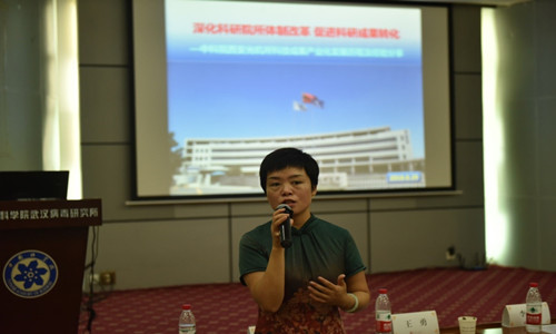 本屆培訓(xùn)班邀請了西安光學(xué)精密機(jī)械研究所知識產(chǎn)權(quán)與產(chǎn)業(yè)發(fā)展處副處長李燕、武漢市科技成果轉(zhuǎn)化局副局長王勇、武漢分院副院長李偉做專題報(bào)告。3位報(bào)告人分別從西安光機(jī)所科技成果產(chǎn)業(yè)化發(fā)展歷程和經(jīng)驗(yàn)分享、科技成果轉(zhuǎn)化的武漢實(shí)踐、武漢分院院地合作工作經(jīng)驗(yàn)分享等方面做了精彩的報(bào)告。會議同時(shí)邀請了武漢物理與數(shù)學(xué)所、武漢病毒所、水生生物所和武漢植物園的科技處同志介紹研究所的成果轉(zhuǎn)化模式和可轉(zhuǎn)化的科研成果。參培人員結(jié)合自身實(shí)際工作,分別就科研人員創(chuàng)新創(chuàng)業(yè)的激勵機(jī)制,新形勢下研究所軍民融合發(fā)展工作的探索、地方政府在成果轉(zhuǎn)化過程中的定位、角色、作為等諸多方面進(jìn)行了熱烈討論和深入交流。