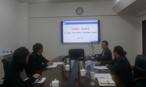 為了深入學習貫徹習近平新時代中國特色社會主義思想和黨的十九大精神,按照2018年學習計劃要求,12月27日,沈陽分院分黨組理論中心組開展了專題學習活動,深入學習領會新時代中國共產黨的初心和使命是“為中國人民謀幸福,為中華民族謀復興”的重要論斷。沈陽分院分黨組成員、院長韓恩厚以《不忘初心、牢記使命》為題做了專題報告。分黨組書記、副院長姬蘭柱,分黨組成員、副院長馬越紅,分黨組副書記、紀檢組組長郭秀銀參加了學習會議。會議由姬蘭柱主持。