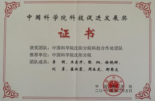 在1月17日召開(kāi)的中國(guó)科學(xué)院年度工作會(huì)議上,繼剛剛榮獲2018年中國(guó)產(chǎn)學(xué)研合作促進(jìn)獎(jiǎng)后,沈陽(yáng)分院科技合作處團(tuán)隊(duì)喜獲2018年度中國(guó)科學(xué)院科技促進(jìn)發(fā)展獎(jiǎng)。