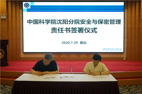 沈陽分院院長韓恩厚與分院系統(tǒng)大連化物所、金屬所、沈陽生態(tài)所、沈陽自動化所、海洋所、青島能源所、煙臺海岸帶所所長以及沈陽計算公司、沈陽科儀公司總經(jīng)理逐一簽署《沈陽分院安全與保密管理責任書》。
