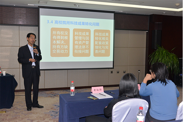 黃敘新以“科技成果轉(zhuǎn)化與股權(quán)設(shè)計(jì)”為題,就我國(guó)成果轉(zhuǎn)化發(fā)展趨勢(shì)、企業(yè)風(fēng)險(xiǎn)與防范、成果轉(zhuǎn)化問(wèn)題剖析、股權(quán)設(shè)計(jì)與激勵(lì)機(jī)制以及成果轉(zhuǎn)化實(shí)操案例解讀等為學(xué)員們做了精彩報(bào)告。在下午的咨詢和答疑環(huán)節(jié),黃敘新結(jié)合自身工作經(jīng)驗(yàn),解答了學(xué)員們?cè)诔晒D(zhuǎn)化實(shí)際操作過(guò)程中遇到的問(wèn)題,特別是融資過(guò)程中股權(quán)架構(gòu)的設(shè)計(jì)問(wèn)題。本次會(huì)議得到參培人員的一致好評(píng),并表示會(huì)后將與黃敘新深入交流,指導(dǎo)本單位成果轉(zhuǎn)化股權(quán)融資的服務(wù)工作。