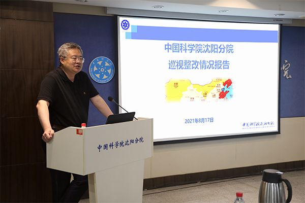8月17日,中國科學(xué)院沈陽分院召開巡視整改情況通報會。按照疫情防控要求,會議以視頻會議的方式進(jìn)行,中科院巡視辦整改與督辦室負(fù)責(zé)人程海濤及相關(guān)人員、沈陽分院領(lǐng)導(dǎo)班子成員、分院系統(tǒng)各單位黨政負(fù)責(zé)人、分院機(jī)關(guān)全體在職職工、離退休支部代表等人員參會。會議由沈陽分院院長韓恩厚主持。