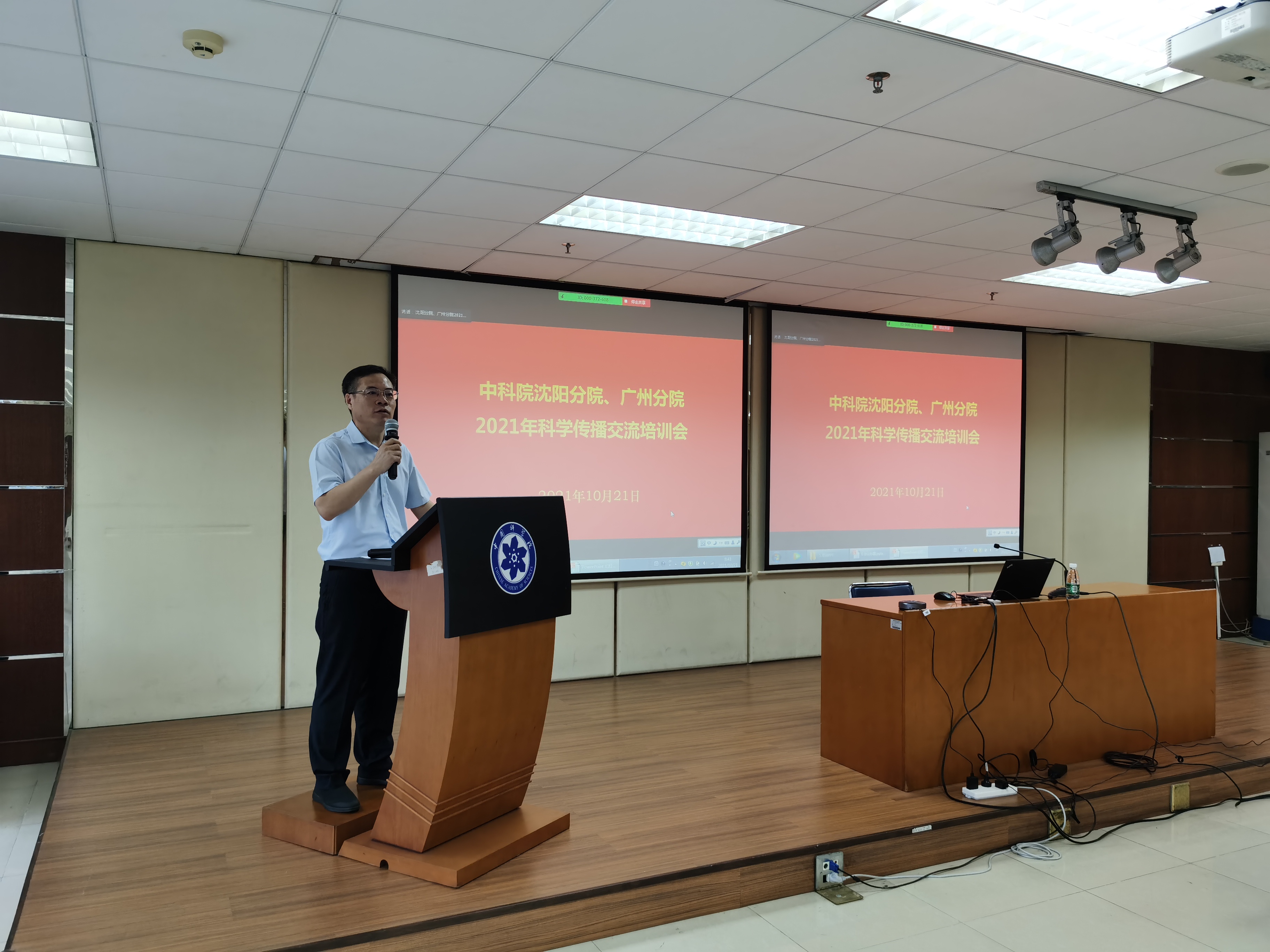 為認(rèn)真貫徹落實(shí)院夏季黨組擴(kuò)大會(huì)議關(guān)于統(tǒng)籌抓好科學(xué)傳播和科普工作要求,促進(jìn)分院之間的學(xué)習(xí)和交流,加強(qiáng)科學(xué)傳播隊(duì)伍建設(shè),提升科學(xué)傳播工作能力和水平,10月20日至22日,沈陽分院、廣州分院聯(lián)合舉辦2021年科學(xué)傳播交流培訓(xùn)會(huì),主會(huì)場(chǎng)設(shè)在廣州,其他地區(qū)設(shè)視頻分會(huì)場(chǎng)。沈陽分院副院長(zhǎng)馬越紅,廣州分院副院長(zhǎng)謝昌龍,廣州地化所黨委副書記李海濱,華南植物園黨委副書記徐海,沈陽分院、廣州分院系統(tǒng)各單位科學(xué)傳播工作部門負(fù)責(zé)人及業(yè)務(wù)骨干共62人參會(huì)。會(huì)議分別由廣州分院辦公室副主任李曉靜,沈陽分院辦公室副主任劉妍、黨群工作處副處長(zhǎng)劉旭東及華南植物園綜合辦副主任黃瑞蘭主持。
