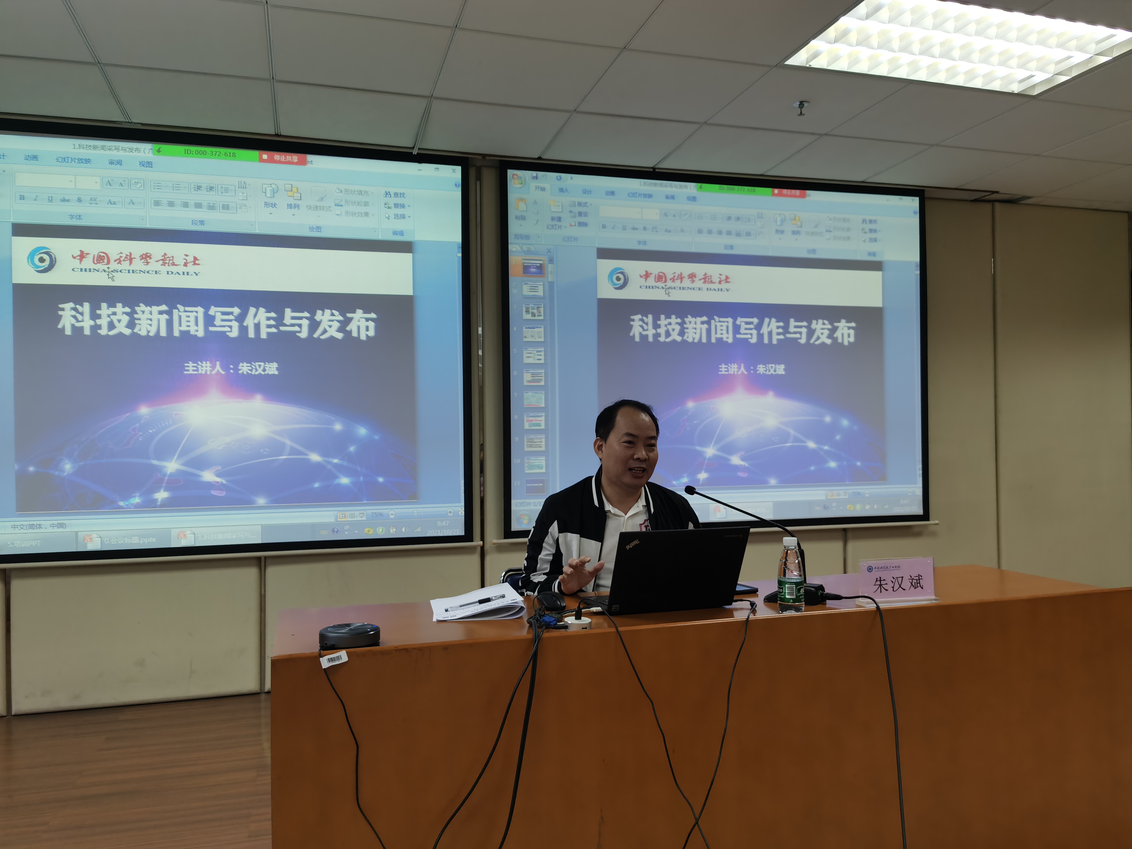 本次培訓(xùn)邀請(qǐng)了中國科學(xué)報(bào)廣東記者站站長(zhǎng)朱漢斌,光明日?qǐng)?bào)廣東記者站站長(zhǎng)吳春燕,廣東省科協(xié)科技普及部部長(zhǎng)吳仕高,院科學(xué)傳播局科技攝影聯(lián)盟副理事長(zhǎng)謝震霖分別圍繞《科技新聞寫作和發(fā)布》、《網(wǎng)絡(luò)危機(jī)應(yīng)對(duì)和輿論引導(dǎo)》、《為廣東不斷創(chuàng)造新輝煌厚植沃土》、《科技攝影芻議》作專題報(bào)告,為參會(huì)人員提供理論基礎(chǔ)和業(yè)務(wù)經(jīng)驗(yàn)支撐。