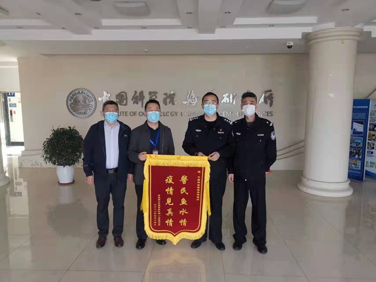八大關(guān)派出所干警赴海洋所送上錦旗表達(dá)感謝