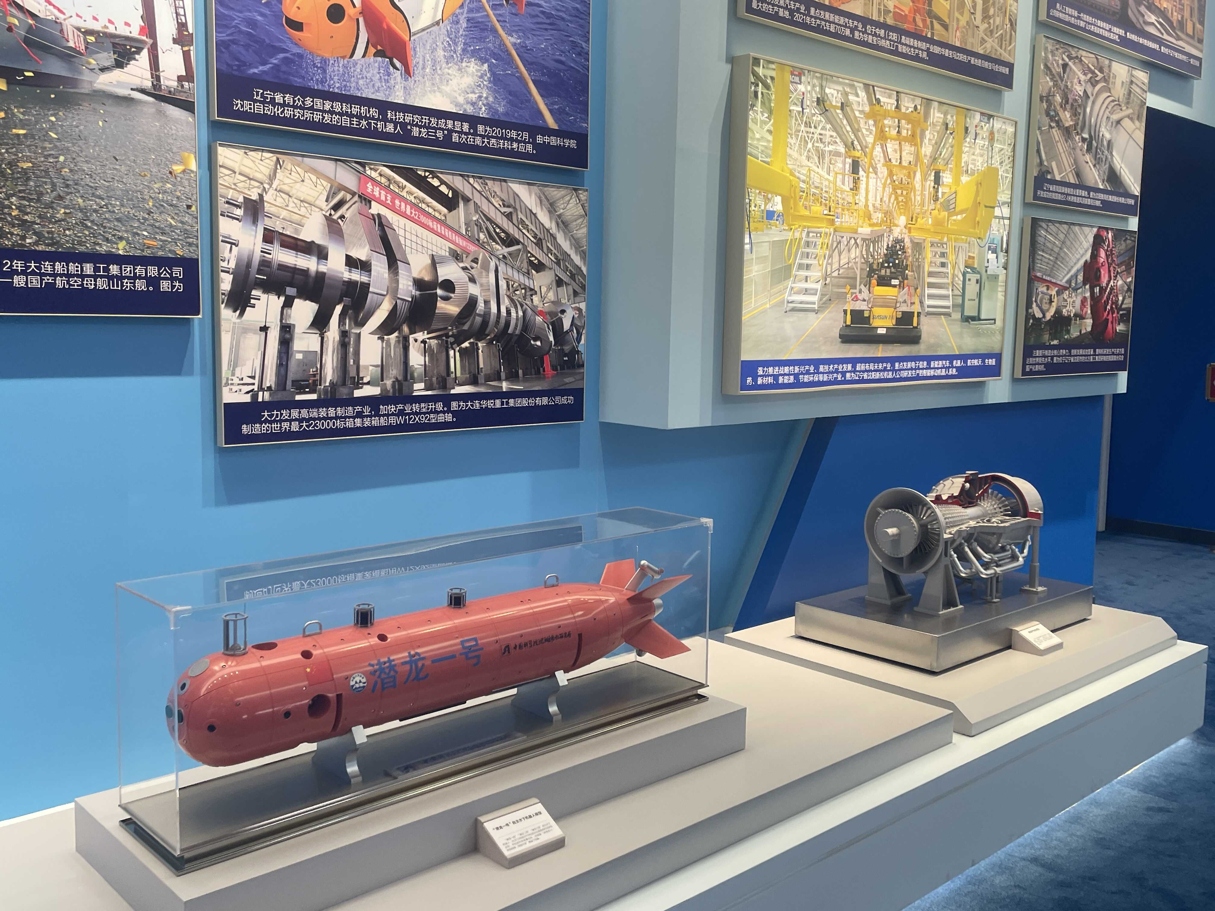 遼寧展區(qū)——“潛龍一號(hào)”、重型燃?xì)廨啓C(jī)(圖左及右)