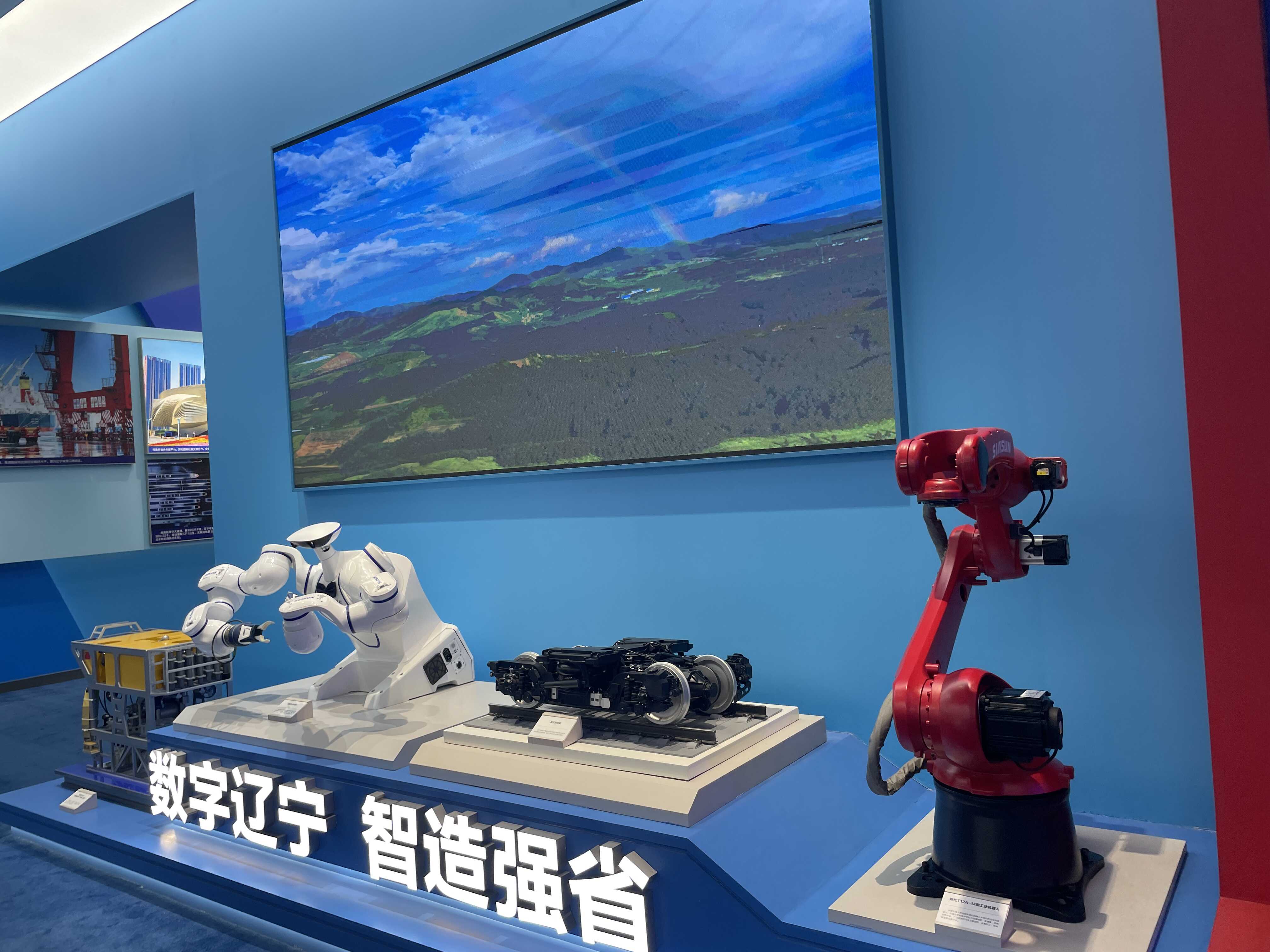 遼寧展區(qū)——“海星6000”有纜遙控水下機(jī)器人、新松雙臂協(xié)作機(jī)器人、高鐵轉(zhuǎn)向架、新松工業(yè)機(jī)器人(圖左及右)