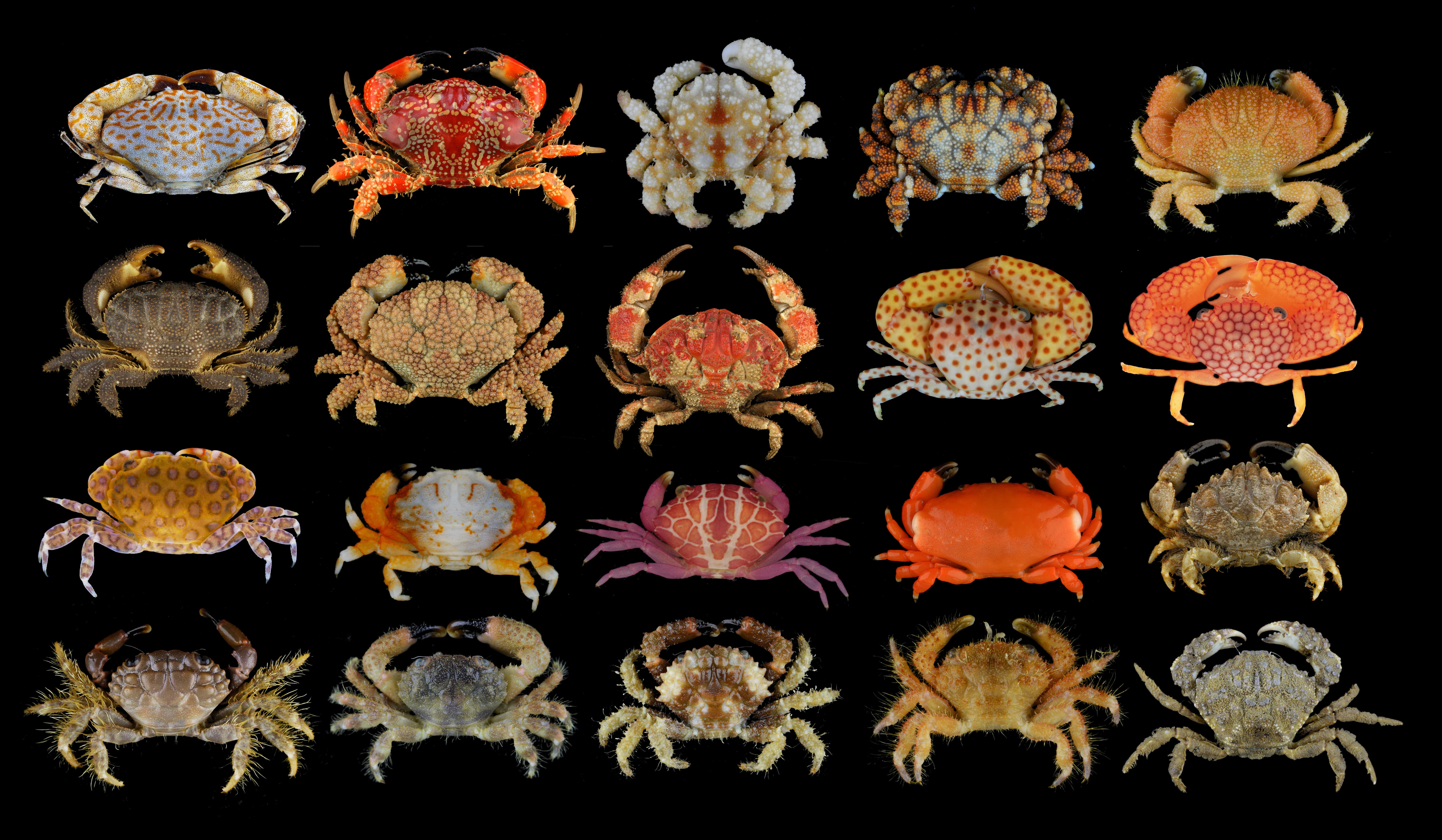 蟹類隸屬于甲殼動(dòng)物亞門短尾下目,它們是甲殼動(dòng)物中物種多樣性最高的類群之一,世界范圍內(nèi)已報(bào)道超過12000種。蟹的外形極為多樣,其中不乏一些美麗的物種,從形狀到色彩都似精心設(shè)計(jì)過一般,如同杰出的工藝品。