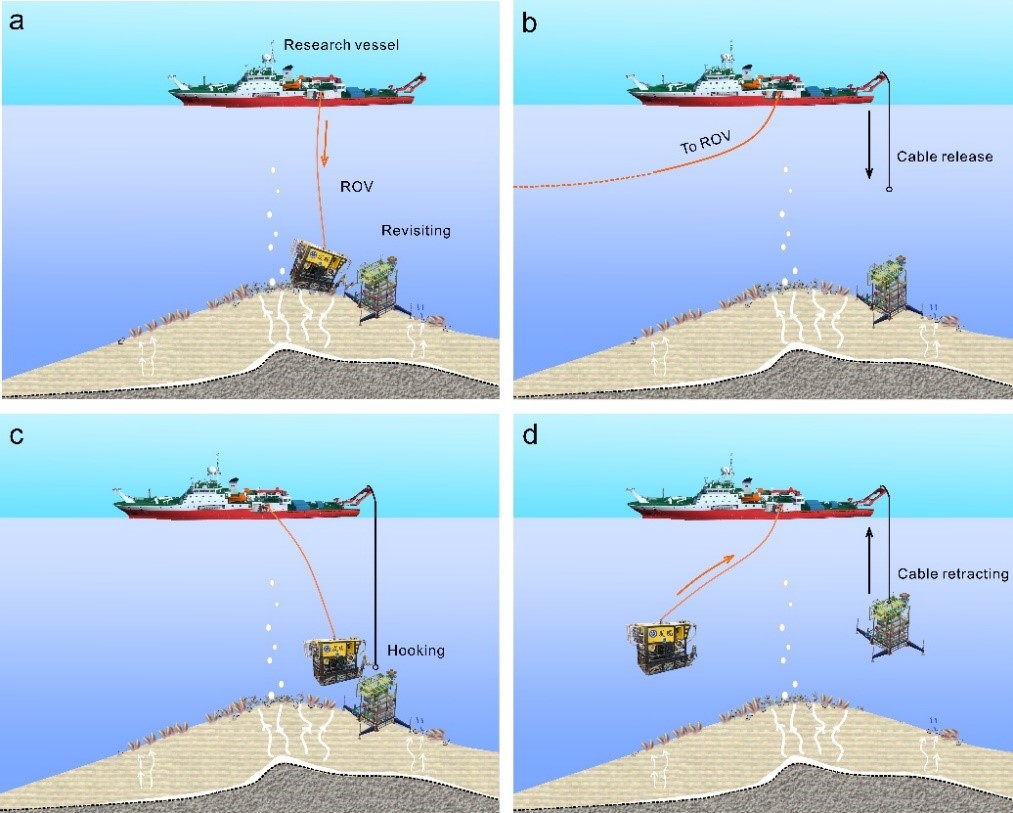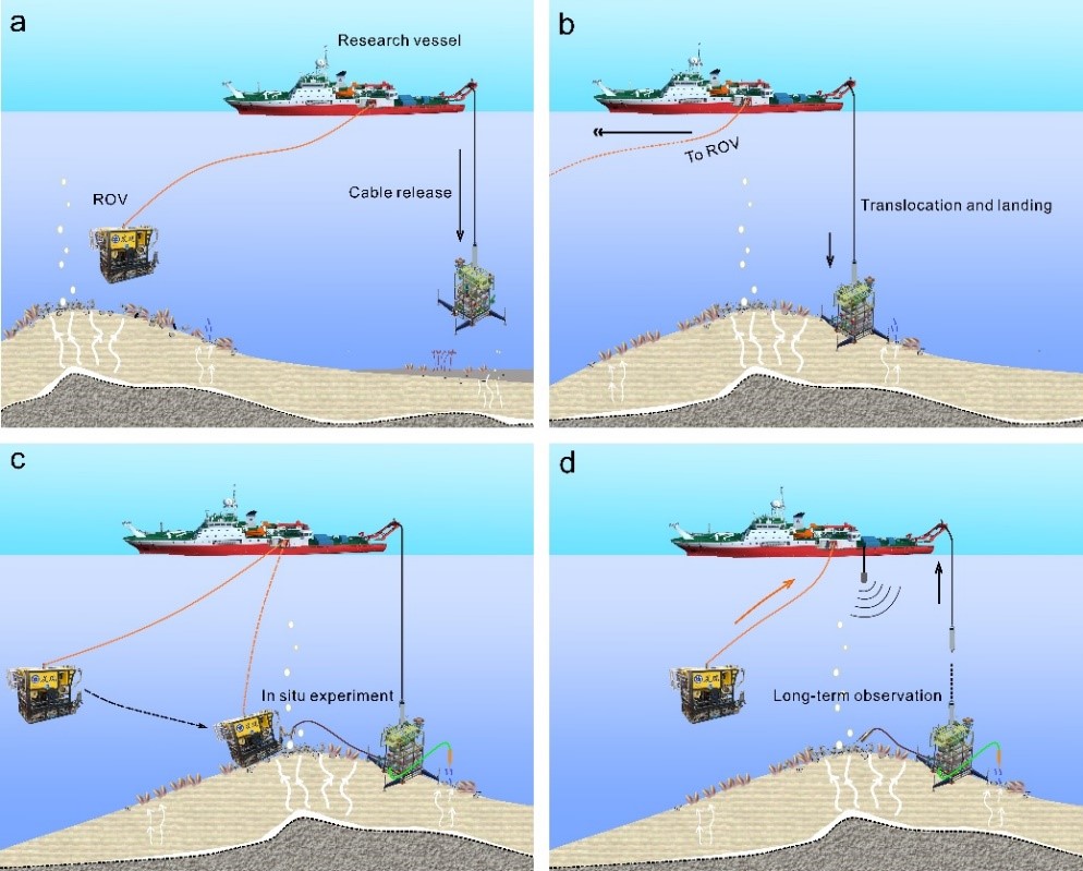 為此,研究團隊突破水下耐腐蝕技術、能源管理技術等關鍵技術,探索新型水下布放及回收模式,研制了多代深海坐底長期觀測系統(tǒng)(Long-term ocean observation platform, LOOP),實現(xiàn)了對觀測區(qū)域高清影像資料、近海底理化參數(shù)及保壓流體樣品等數(shù)據(jù)樣品的綜合獲取。