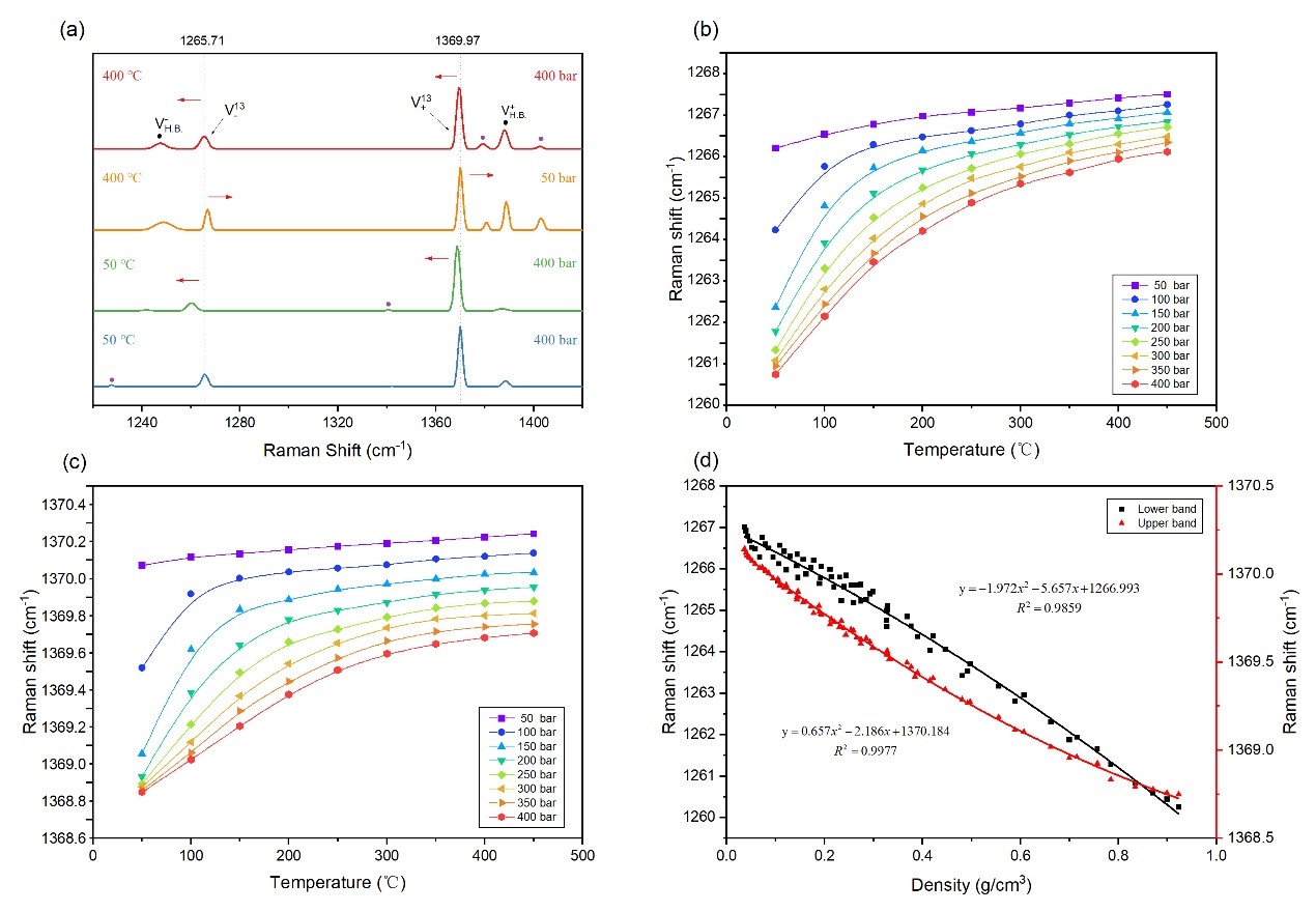 Ge, Y., Li, L., Xi, S., Ma, L., Luan, Z., and Zhang, X*., 2023, Raman spectral characteristics of 12CO2/13CO2 and quantitative measurements of carbon isotopic compositions from 50 to 450 C and 50 to 400 bar. Spectrochimica Acta Part A: Molecular and Biomolecular Spectroscopy, v. 296.