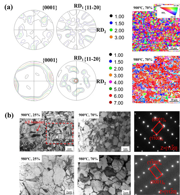 為進(jìn)一步提高鈦合金棒材和鍛件的性能及其穩(wěn)定性,中國科學(xué)院金屬研究所輕質(zhì)高強(qiáng)材料研究部高溫鈦合金團(tuán)隊(duì)針對鈦合金鍛造組織中微織構(gòu)的形成和演化機(jī)制開展了系統(tǒng)的研究工作。通過對具有板條狀組織Ti60鈦合金的熱壓縮實(shí)驗(yàn),研究了