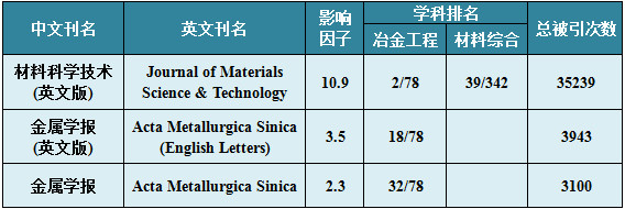 金屬所期刊2022年度SCI引證數(shù)據(jù)