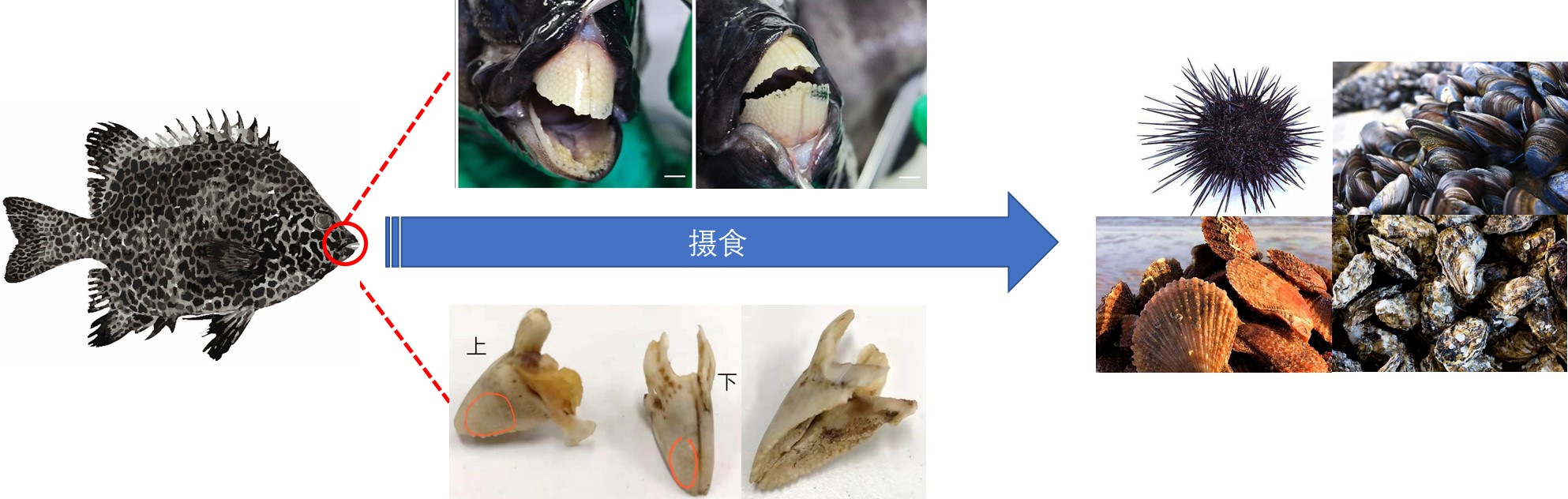 斑石鯛(Oplegnathus punctatus)是我國近年來新開發(fā)的重要海水養(yǎng)殖經濟魚種,具有典型的愈合型喙狀齒表型,可攝食牡蠣、海膽等硬殼類食物。海洋所李軍研究團隊在國內率先突破了斑石鯛全人工繁育技術,建立了苗種規(guī)?;a技術(100萬尾/年)及工廠化封閉循環(huán)水養(yǎng)殖與網箱養(yǎng)殖相耦合的陸海接力養(yǎng)殖模式,極大地擴大了斑石鯛養(yǎng)殖規(guī)模。