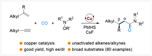 大連化物所發(fā)展銅催化非活化烯烴/炔烴的不對稱氫胺化羰基化反應