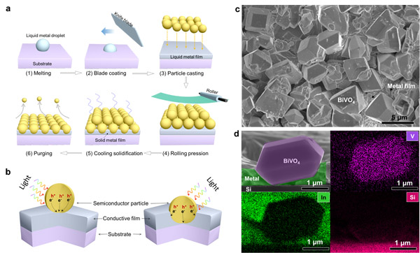 圖1. 基于低溫液態(tài)金屬鑲嵌半導(dǎo)體顆粒制備嵌入式半導(dǎo)體光活性薄膜